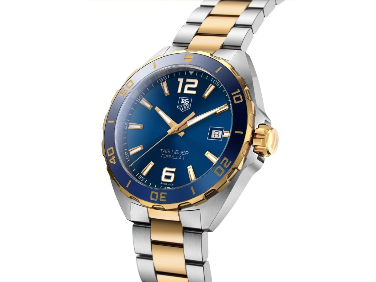 A daring, racing-inspired sports watch. Quartz-powered, it has a unidirectional turning bezel in polished aluminum and gold plated (2N) steel. Its superlative technical features and design rooted in TAG Heuer’s decade-long commitment to Formula 1.